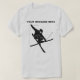 Add a name, a clever saying, or your favourite skiing spot to create your own custom graphic tee. Your message appears in bold black lettering above a silhouette style illustration of a skier performing a ski trick.