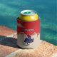 Create a fun personalised gift for your favourite snowmobiler. They'll love keeping their drink as cold as ice with this snowmobile themed can sleeve. It has a vintage style illustration of a snowmobile and rider in navy blue set against a backdrop of cream or ivory coloured mountains against a red background. It's ready to be personalised with a name in cream and blue coloured lettering. The same graphic and text appear on both sides.