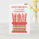 You can add the age to this brightly colored birthday card for your stepbrother, with a strawberry birthday cake. The cake has lots of candles with different patterns and there is a patterned band around the cake with colorful summer fruits - strawberries, raspberries, limes and orange slices. Above the cake, the greeting, in red lettering, is 'HAPPY BIRTHDAY to a very special Step Brother' and on the cake there is a space for you to add the age, followed by 'years old today!' in white lettering. Please feel free to customize the inside message if you wish; you can change the font and the color as well as the message.