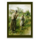 Little girl caught with fruit in her apron being lectured by old woman wearing a scarf. Vintage fine art by Swedish artist Carl Larsson.