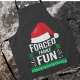 "Forced Family Fun" Christmas humour typography with big red Santa Claus hat on top, with a bit of the ugly sweater style. Traditional baking Christmas cookies and food can be "forced family fun" for the chefs in the family, so it's perfect for them!