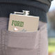 This flask is perfect for the golfers in your life. It features golf clubs, on a green, with a golf ball and flag. The text reads "FORE THE GOLFER" Hand Sanitizer. There is also an area for you to customise your flask.