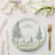 Invite your loved ones to a baby shower with this forest and mountain-themed watercolor invitation. The charming sage green colour palette evoke a sense of peace and natural beauty. This customisable card is perfect for rustic, outdoor, or woodland baby shower celebrations.