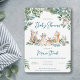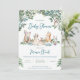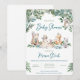 Celebrate your little cub with this charming woodland baby shower invitation featuring sweet watercolor forest animals nestled among soft greenery. A gentle bear, delicate deer, whimsical fox, wise owl, and darling bunny rabbit create a storybook-inspired design that feels warm, natural, and timeless.
