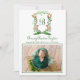 This adorable birth announcement would be perfect for letting the world know your little man has arrived. It has a green monogrammed watercolor crest surrounded by greenery and baby forest animals, a photo of your beautiful baby, and your bundle of joy's birth date, weight and length, and a coordinating watercolor striped back. Everyone will love it!