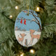 Deer, squirrel, owl and bird in a winter scene, looking at red stockings with candy canes. Perfect for a blue and brown or blue and white themed christmas tree. Share the Holidays with these personalised ornaments, sure to be a great conversation starter. Great christmas gift for anyone!