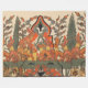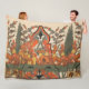 FOREST ANIMALS,RED RABBITS AMONG FLOWERS LEAVES FLEECE BLANKET