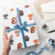 Forest Animals Woodland Creatures Gift Wrap orange fox racoon squirrel and hedgehog.