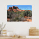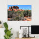 This is a low resolution image for the web, the poster you'll get has vibrant colour and sharp detail. A panoramic view of the forest and landscape at the base of the Cathedral Rock in Sedona, Arizona. Photography by Minerva Bloom.