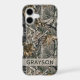 Customize this forest branches camouflage iPhone 17 case with your name in a trendy modern CAP font in gray on opaque cream. It's masculine and perfect for your favorite military, hunting, country or outdoorsman!