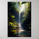 Discover the enchantment of a beautiful waterfall nestled in a charming forest, surrounded by lush green flora. The jungle is so dense and vibrant that only a small part of sunlight filters through, adding to the allure of the scene. Immerse yourself in the tranquillity of this picturesque digital art, where the captivating waterfall and the abundant greenery create a mesmerising symphony of nature's wonders.