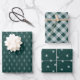 Create the best looking gift under the tree this year with these wrapping paper sheets in coordinating patterns. Set features a tonal buffalo plaid, modern geometric trees, and classic snowflakes, all in jewel toned dark forest green.