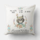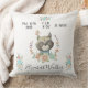 a perfect gift for yourself or others is this super cute birth stats throw pillow with floral wreath and bouquet of daisy in pastel colours with baby forest friends. All info is in handwritten font. Check our store for more items from this collection