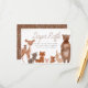 A diaper raffle enclosure card to match our "Forest Friends & Woodland Greenery Baby Shower" Invitations. Featuring a deer, an owl, a racoon, a fox, a little mouse, a squirrel, a bunny rabbit, a bear, and a birdy! At the top of the card, there is faux gold glitter. Cards reverse to a white wood lines pattern against a rustic brown background. Typography has a mix of modern script lettering and classic serif fonts. Perfect for any baby boy, baby girl, gender-neutral, or gender-reveal shower event! View the collection on this page for more matching products!
