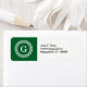 Forest Green and White Greek Key Round Framed Initial Monogram