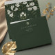 This Art Nouveau Splendour Wedding Envelope set exemplifies sophistication and attention to detail. The exterior's deep forest green hue provides a rich canvas for the elegant white and gold monogram emblem, which hints at the refined style waiting inside. Upon opening the flap, the recipient is greeted by a continuation of the stunning white floral pattern against the same lush green background, creating a visual harmony and anticipation for the enclosed invitation. The back of the envelope features the couple's address in a classic typeface, adding to the envelope's bespoke feel. This envelope set is not just a casing but an integral part of the wedding narrative, designed to intrigue and delight guests with its classic beauty and artful design.