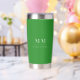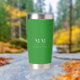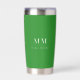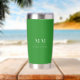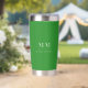 Forest green background colour. Personalise and add your monogram initials and full name. White text. For both him and her.