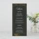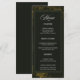 A beautiful wedding menu card designed with an elegant gold floral pattern on a deep forest green background. Perfect for a sophisticated or garden-inspired wedding theme.