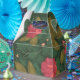 Abstract Camellia flower design in deep muted greens and hot pink. Painterly flower motif that celebrates the beauty of Nature