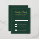 Traditional style forest green and gold foil wedding RSVP card featuring a simple and classic design with "Kindly Reply" in an elegant calligraphy inside of a thin border.  The template allows your guests to indicate the number attending.  This classy response card is perfect for a formal wedding.