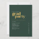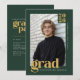 Celebrate a significant academic achievement with this modern, editorial-inspired graduation announcement that doubles as a stylish party invitation. The contemporary design features a modern forest green background with warm golden typography and a clean, refined layout. Easily customize with your favorite photo, the graduate's name, class year, and high school. The reverse side offers a coordinating grad party invitation template, allowing you to seamlessly share all the celebration details. © Kimbellished, LLC
