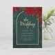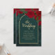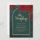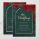Forest Green Gold RED Roses Winter Wedding Invitation