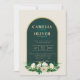 Forest Green Gold White Roses Winter Wedding Invitation