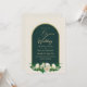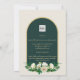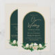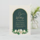 Forest Green Gold White Roses Winter Wedding Invitation