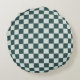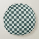 Forest green moss chequerboard pattern round cushion