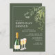 Forest Green Moss Modern Champagne Birthday Dinner Invitation