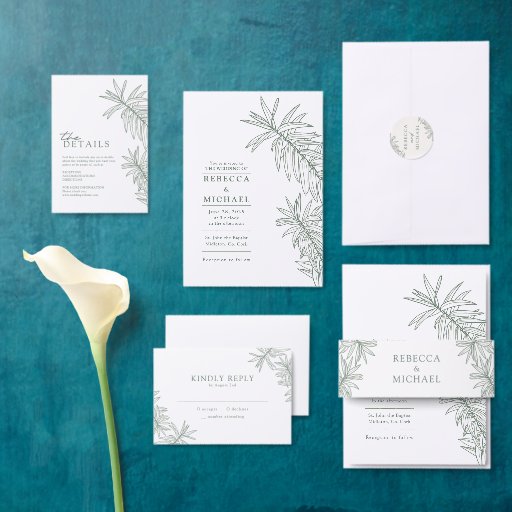 Forest Green Simple Botanical Leaves Wedding Designed by Amour Paperie