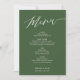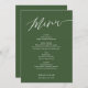 Bring timeless elegance to your reception with this Forest Green Wedding Flat Menu Card, offered in both digital and printed options to fit your needs. Featuring a rich forest green background accented by sophisticated typography, this design exudes natural beauty and refined charm, perfect for woodland, garden, or classic evening weddings. The flat card layout displays your curated menu clearly and beautifully, adding a polished touch to each place setting. Available as a high-resolution digital file for easy DIY printing or professionally printed on premium cardstock for a luxurious finish, it’s a versatile choice that enhances your wedding décor while delighting your guests.