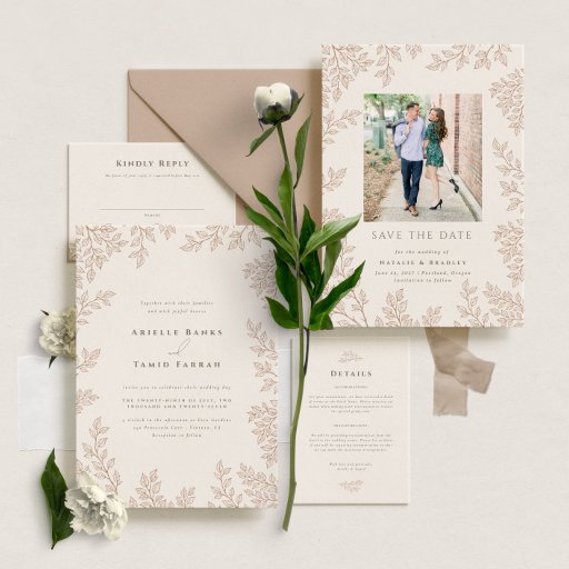 Celebrate your special day with this elegant fall wedding invitation featuring a minimalist botanical border in soft, earthy tones. The delicate leaf illustrations frame the text beautifully, giving the design a classic yet modern aesthetic. The neutral beige background and refined serif typography add a touch of timeless sophistication. Ideal for autumn weddings, garden ceremonies, or nature-inspired celebrations.