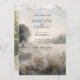 Delight your guests with a beautiful nature inspired wedding invitation, featuring a soft watercolor misty forest meadow in soft ethereal light. Elegant decorative typography is combined with a modern delicate script. Add your wedding photo to the back of the invitation or simply delete this sample placeholder and leave the space blank. Available in print, as a digital download, or both.