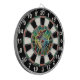 Colourful circular design of a of a moose in a forest, with a prominent target.