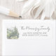 On the right side, the name is displayed in an elegant script font, with the return address below in a clean serif font for a balanced, easy-to-read layout.