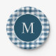 Forest Mountain Rustic Adventure Monogrammed Paper Plates-Featuring blue and white plaid to coordinate with Baby Shower Invitations in blue, customised with your initial for the monogram.