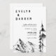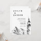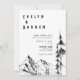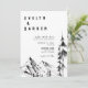 Forest Mountain Wedding Invitation with hand drawn mountains, nature, tall trees, scenic landscape wedding invitation.