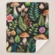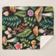 Forest Mushroom Fern Pattern Black Background Sherpa Blanket