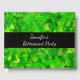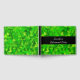 This guestbook design features an abstract pattern of many triangle shapes coloured various shades of green. It could perhaps be said to resemble a dense forest of coniferous trees. It also features a personalised event description. For example, it could be used for somebody's retirement party.