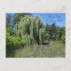 A small pond covered in water lily's with a large and beautiful Weeping Willow tree growing on its banks in Forest Park, St. Louis, Missouri.