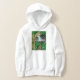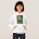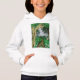 A misty forest path design on girl's hoodie, a forest with flowers, an owl, and a butterfly.
