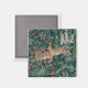 Tapestry of rabbits running in a lush forest environment. Deep green leaves, foxglove flowers. William Morris arts and crafts era tapestry.