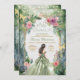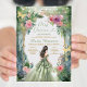 Forest Sage Green Dress Pink Flowers 15 Mis Quince Invitation