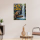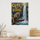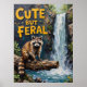 This captivating painting presents a racoon, a "Forest Sentinel," perched on a log next to a waterfall, looking out with an inquisitive gaze. The scene is set in a vibrant forest with a powerful waterfall and a rushing stream below. The text "Cute but but feral" is painted on the rustic wooden background, adding a touch of personality to the piece. The thick, textured brushstrokes add a rugged yet charming feel to this woodland portrait.