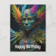 A digital portrait of a forest spirit with vibrant feathered wings and a crown made of feathers.