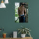 This poster features a dramatic photograph by Kevin Woerner of a gorgeous, toned shirtless young man in the forest.