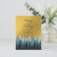 A beautiful design showcasing trees in a forest and a golden sky. Colour tones include neutral blue tones and gold. A rustic design ideal for the holiday season.