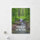 Postcard featuring a photo of a forest landscape. Get lost in the enchanting woods with a myriad of trees that look so alive you can almost hear their whispering leaves. In the midst of the emerald wilderness, a crystal-clear stream meanders in the heart of tranquillity. Use this postcard to share your messages and remind your recipient to "enjoy your special day" in the most beautiful way.