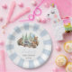 Watercolor blue cute woodland forest animals, bear, fox, racoon, owl boy baby shower paper plates.